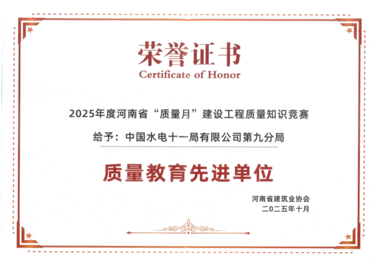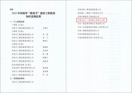 九分局在2025年河南省“质量月”建设工程质量知识竞赛中获两项荣誉 |