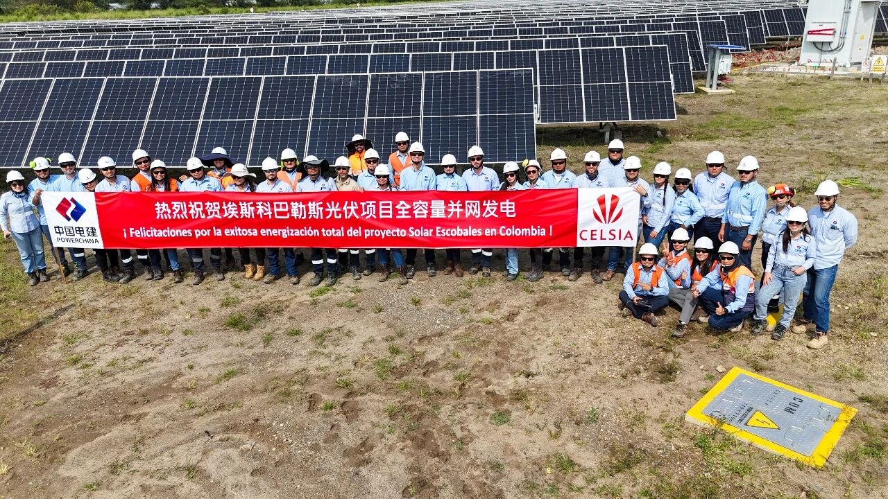 近日,哥伦比亚埃斯科巴勒斯148兆瓦光伏项目成功实现全容量并网发电。该项目是目前中国电建在哥伦比亚在建的最大光伏项目。 作为当地重要的清洁能源项目,埃斯科巴勒斯光伏电站全面投运后,预计每年可生产超过2.6亿千瓦时的清洁电能,能够满足数万户家庭的用电需求,并可实现每年约20万吨二氧化碳的减排,不仅有助于提升区域电力供应的稳定性,也将为哥伦比亚推动能源结构优化和绿色发展目标提供持续动力,进一步彰显了中国企业在国际新能源合作中的建设能力与责任担当。 在工程建设过程中,项目团队面对复杂的自然环境和艰巨的施工任务,始终保持迎难而上、攻坚克难的奋斗姿态,全力推进项目建设。项目所在地雨季漫长、降雨频繁,给施工组织、现场管理和资源调配带来了持续压力。同时,环境保护要求的动态调整也对工程实施提出了更高标准,部分施工方案和进度安排需随之不断优化完善。面对多重考验,项目团队坚持问题导向,强化统筹协调,动态优化施工组织,持续加强现场安全、质量和进度管控,扎实推进土建施工、机电安装、系统调试等关键环节,最终顺利完成各系统联合调试与并网发电。 工程航拍 参建职工庆祝并网发电 |