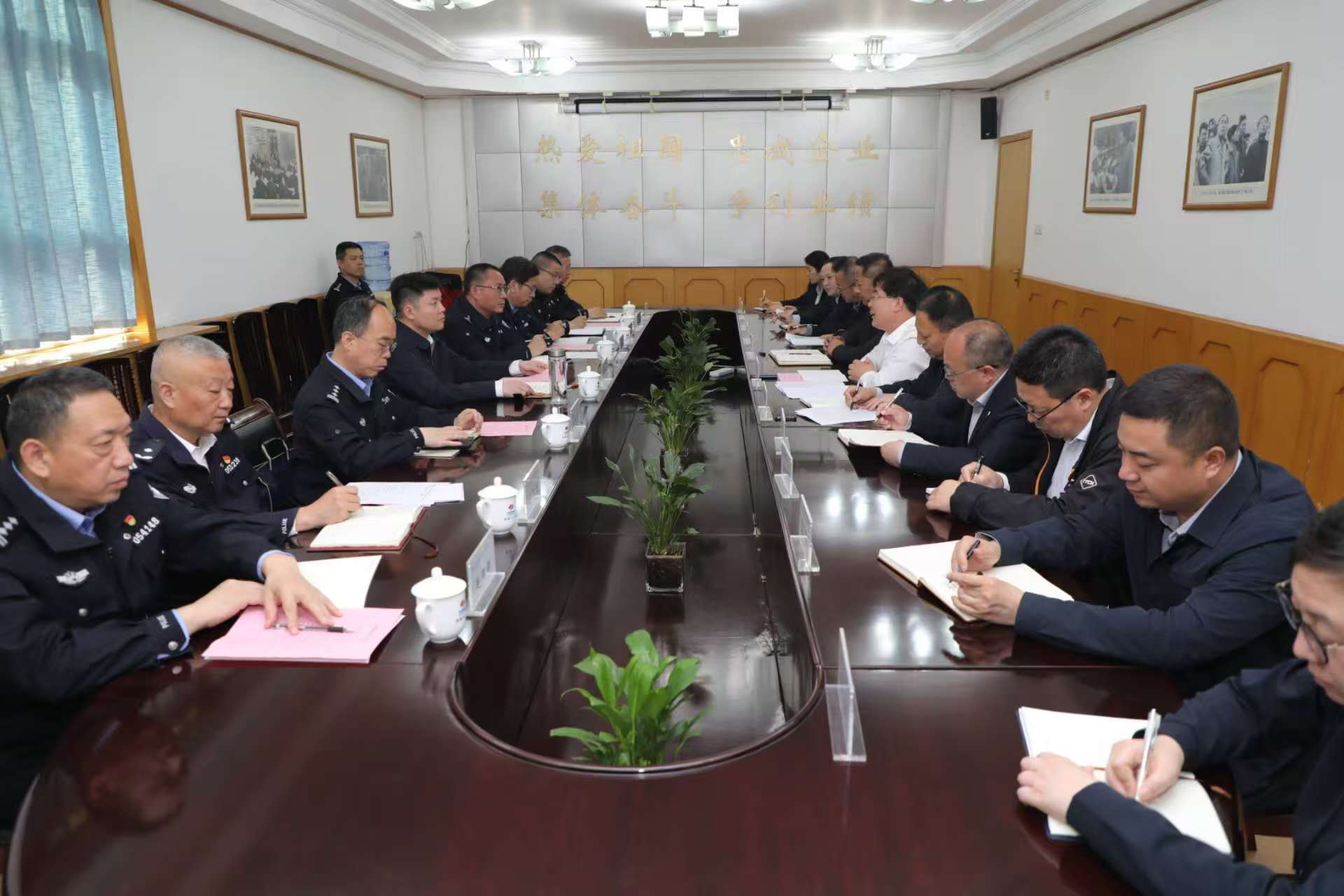 4月17日,三门峡市副市长、市公安局党委书记、局长王磊一行到公司调研指导工作。受公司党委书记、董事长朱晓明,党委副书记、董事、总经理王操委托,公司副总经理张冕与王磊一行围绕进一步深化警企联动、筑牢安全发展防线进行深入交流。 张冕对王磊一行的到来表示热烈欢迎,对三门峡市委、市政府长期以来给予公司发展的关心、支持与帮助表示衷心感谢,并详细介绍了公司发展概况及国内外业务布局情况。他表示,水电十一局与三门峡市同根同源、共生共荣,在长期共同发展中结下了深厚情谊。公司始终高度重视安全维稳工作,在扎实抓好生产经营中心工作的同时,持续强化内部治安保卫管理,扎实推进信访维稳工作,积极主动配合属地公安部门开展联防联控,全力保障了企业及周边区域的安全稳定。下一步,希望三门峡市公安局继续给予公司发展更多指导与支持,政企携手,共同为三门峡市经济社会高质量发展营造和谐有序的良好环境。 王磊对公司为三门峡市经济社会高质量发展作出的突出贡献,以及内部治安保卫工作取得的扎实成效给予充分肯定和高度赞扬。他指出,水电十一局是助力三门峡市高质量发展的骨干中坚力量,三门峡市公安局将始终坚持主动靠前、精准施策,持续优化政务服务,简化户籍迁移、出入境证件办理等业务流程,强化各类风险隐患排查防控,加强电信诈骗、合同诈骗等涉企违法犯罪法治宣传培训与办案指导力度,全力以赴为企业发展纾困解难、保驾护航。下一步,市公安局将不断健全完善警企联动长效机制,持续维护企业及周边区域治安秩序稳定,以一流的安全保障和优质高效的警务服务,助力企业持续健康发展、行稳致远。 期间,王磊一行参观了公司三门峡展览室。 双方相关部门和单位负责人参加座谈。 座谈交流 |