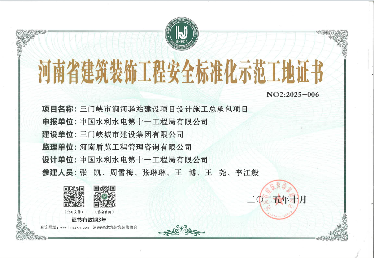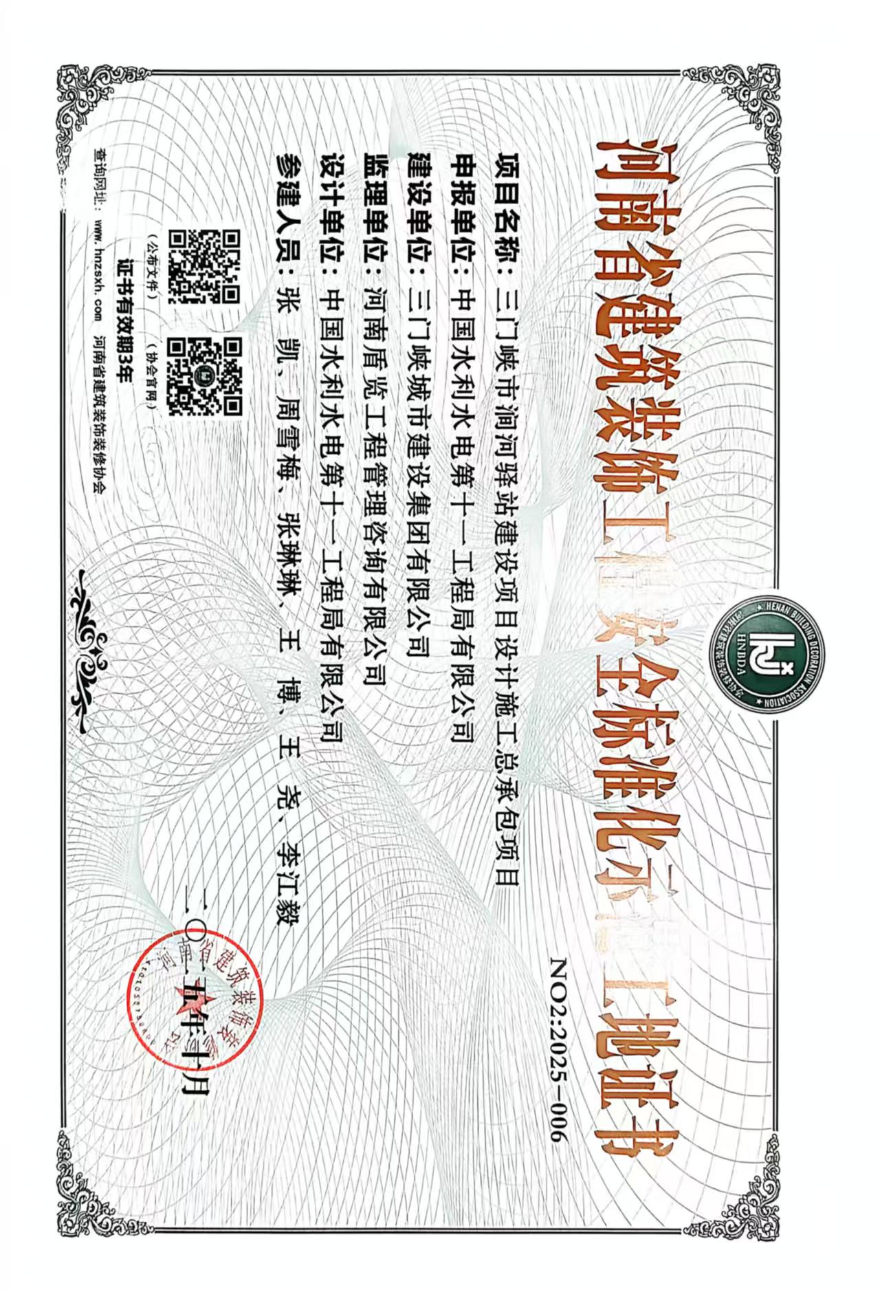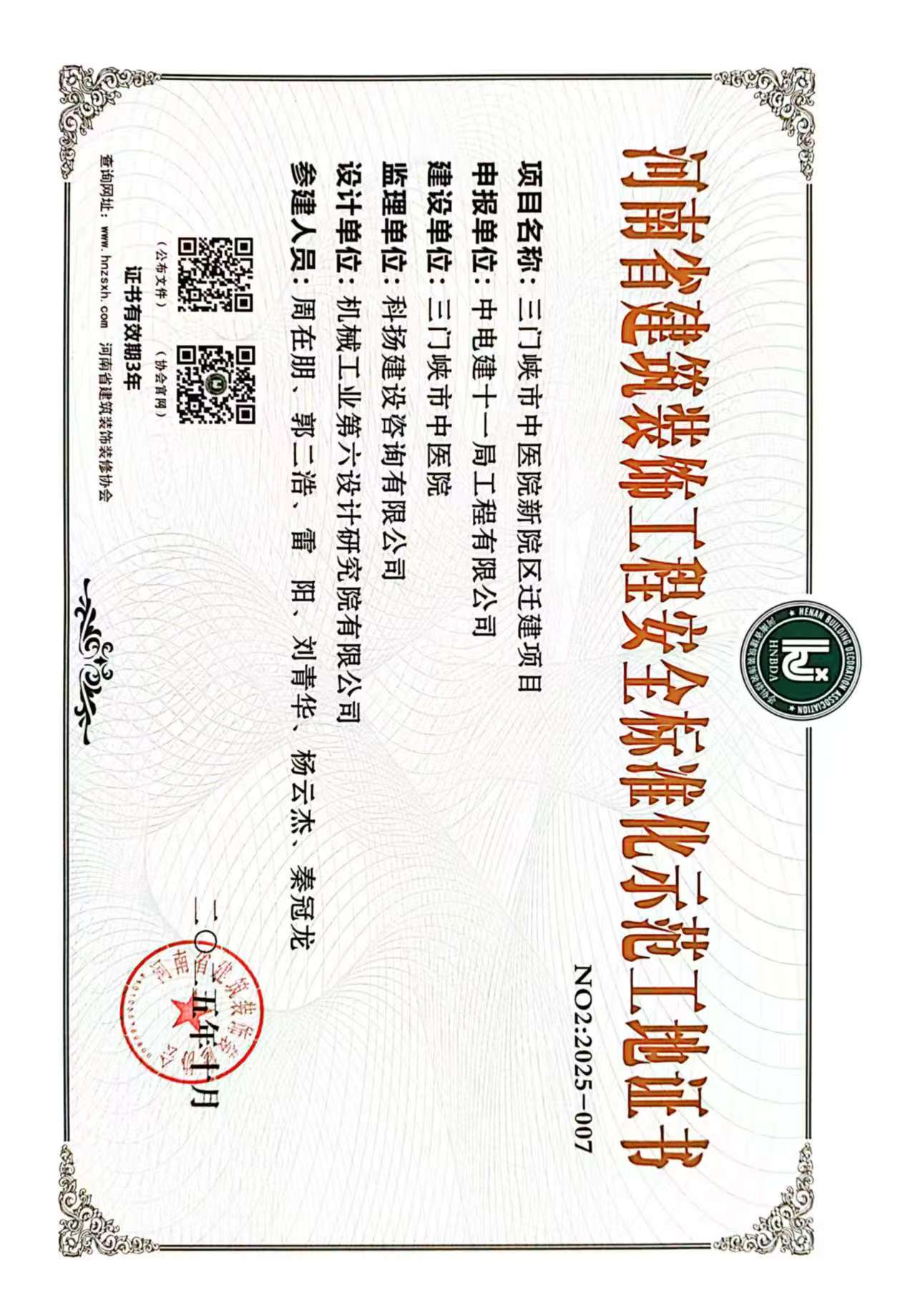 近日,公司承建的三门峡市中医院新院区迁建项目、三门峡市涧河驿站建设项目获评2025年度第二批河南省建筑装饰工程安全标准化示范工地称号。 三门峡市中医院新院区迁建项目总建筑面积近 12 万平方米,规划床位 700 张,涵盖门诊楼、医技病房楼等五栋建筑,集医疗、康复、科研、教学于一体,对完善城市医疗服务体系意义重大。针对医疗建筑施工的复杂性,项目部推出多项创新安全举措:在屋檐钢结构施工中,采用 "双保险" 保障策略,通过不锈钢伸缩护栏明确划分作业区域,并运用安全巡检二维码实现线上实时监督;实施临时入场安全承诺制度,对吊篮配重、配电箱等设备进行标准化配置,电梯井口设置工具化定型护栏,形成了 "人防 + 技防 + 物防" 三位一体的防护体系。面对复杂地质条件与场地限制,建设团队引入 BIM 技术优化施工方案,采用先进桩基础技术,切实保障工程质量与施工安全。 三门峡市涧河驿站建设项目占地面积约3588平方米,总建筑面积约5200平方米,主要施工内容为综合楼一栋(含地下车库),包括室外广场、景观、绿化等配套设施。自开工以来,项目部始终将安全放在首位,通过签订责任书、明确岗位清单,构建从管理层到作业层的全链条责任体系。聚焦高空作业等风险点,以“日常巡查+定期排查”结合的方式,深入开展安全隐患排查与治理工作。常态化开展主题安全培训机制,持续强化职工安全意识。截至目前,项目已完成主体结构及室内外装修装饰,占总工程进度的95%。 证书 |